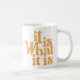 Es ist, was es Kaffee Tasse, es ist, was es ist, was es ist Sprichwort ist eine lustige Tasse - diese ist in einer Senfgelb Farbe.