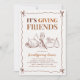 Feiern Sie Freundschaft in dieser Saison mit unserem "It's Giving Friends Modern Friendsgiving Dinner Einladung. Dieses trendige Herbstdesign mit boho-chic Typografie und handgezeichneten Illustrationen von Truthahn, Wein, Kürbissen und Gourds verleiht Ihrer Ansammlung ein angenehmes und gemütliches Ambiente. Ideal für ein Party im Herbst, ein festliches Fest der Freundschaft oder eine rustikale Erntefeier, ist diese bearbeitbare Einladung eine stilvolle Art, um sich zu treffen.