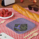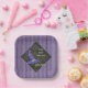 Eine lustige, quadratische Papiertafel mit einer schwungvollen lila und aquamarinen blauen verzauberten Hexenkappe, die "Es ist diese Hexenheit des Jahres, Lasst uns Party" auf einem dunklen Holzkohle schwarzen Hintergrund mit aquamarin blauer Grenze sagt. Der gesamte Text ist bearbeitbar.