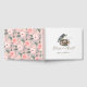 Segen Sie ihr Nest mit unserem schönen böhmischen Stil Aquarellblüte, Zweige und grüne Vogelnest Baby Dusche Gästebuch. Unser Design zeigt unser handgemaltes Blumenvogelnest mit drei blütenrosafarbenen Babyeiern, die zum Schlüpfen bereit sind. Ein niedlicher Wasserfarbenmammvogel ist der Pfirsich auf dem Nest, der ein Zwirnblatt im Mund hält. Auf der Rückseite befindet sich unser handgezeichnetes, blumengeschmücktes Wasserfarbenmuster, das die Vordergrundkunst wunderbar ergänzt. Alle Illustrationen sind handgezeichnete Originalkunstwerke von Moodthology.