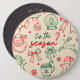 Eine festliche Collage gefüllt mit handgezeichneten Weihnachts-Doodles in roten und grünen Linien. Mit Santa, einem Rentier, Schneeflocken, einem Schneemann, Schleifen, Ornamenten, einer Geschenkbox, einer gemütlichen Tasse heißen Kakao, einer Schneekugel und dem Satz „Es ist die Saison“. Ideal für alle, die Weihnachten und gemütliche Winterferien lieben.