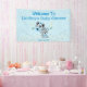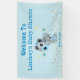 Es ist ein Banner für den Boy Blue Bären. Niedlicher grauer Bär mit Ballons, die sagen, es ist ein Junge. Der Hintergrund ist blau-weiße Punkte mit einem Hauch von Konfetti und Sternen. Personalisieren Sie mit dem Namen der Mama zu sein, und dem Datum.