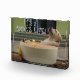 Es ist ein Hundeleben. Dieser Welpe lebt das Leben des Luxus und überlegt das Leben in einem warmen Bad.