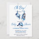 Es ist ein junge blaue Babyschuhe eine Mütze einfa Einladung