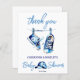 Es ist ein Junge blauen Babyschuhe eine Kappe moderne Aquarell lässige Schriftart Vorlage danke Ihnen Karte. Babydusche Dankeschön Karte