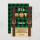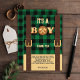 Es ist ein Junge Rustic Lumberjack Flannel Baby Du Dankeskarte