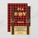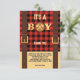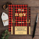 Es ist ein Junge Rustic Lumberjack Flannel Baby Du Dankeskarte