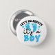Herzlich willkommen der jüngste kleine Mann mit Stolz, indem er diesen charmanten Knopf "Let's Celebrate it's a Boy" trägt, der nur für die stolze Familie und die Freunde der Eltern des Babys geschaffen wurde. Dieses Button mit den Fußabdrücken eines winzigen Babyjungen, die mit herzhaften, blauen Herzen betont werden, ist ein süßes Symbol für Liebe, Unterstützung und Feier. Ideal für Babyduschen, Gender Reveals, Krankenhausaufenthalte oder einfach nur Alltagsaufregung, dieser Button lasse jedem zu wissen, dass man Teil des Jubiläums ist, das auf dem neuesten Band der Freude jubelt.