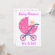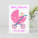 Adorable Baby Girl In einem rosafarbenen Roller ergänzt diese Babydusche-Einladung, mit: Es ist eine Kinderdusche! Anpassen der Einladung an Ihre Bedürfnisse und Ideen