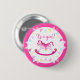 Babydusche oder Geschlecht enthüllt, Es ist ein Mädchen benutzerdefinierte Taste Abzeichen. Handgemalte rosa Rockpferd mit Sternen und grafische Schleife, liest es ist ein Mädchen. Andere passende Artikel verfügbar und es ist ein Junge Abzeichen verfügbar. Original whimsical Baby Boy rosa Hobby / rockendes Pferd Aquarellmalerei und grafische Gestaltung von Sarah Trett für www.mylittleeden.com auf zazzle.