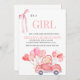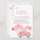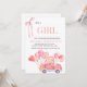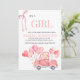 Diese charmante Babydusche lädt ein, die Ankunft eines kleinen Mädchens mit einem warmen und skurrilen Design zu feiern. Die Phrase "IT'S A GIRL" steht im Mittelpunkt der Bühne in einem eleganten, sanften Korallenriff-Schriftart, gepaart mit einer dekorativen Farbbandillustrierung für eine Touch der Eleganz. Unten finden Sie personalisierte Veranstaltungsdetails in einem anmutigen Schriftart für eine einfache Lesbarkeit. Die Unterseite zeigt eine bezaubernde Abbildung eines Vintagen roten Autos, das ein Bündel rosa herzförmiger Ballons trägt und Freude und Festlichkeit hervorruft. Das Gesamtbild verbindet Wärme, Eleganz und Verspieltheit und ist somit perfekt für ein besonderes Fest.