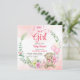 Es ist ein Mädchen Teddy Bären Blumengarnbogen Baby Dusche Einladung Vorlage. Niedlicher Teddybär mit rosafarbenem Band und rosa Ballons für Mädchenduschen.
