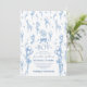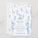 Herzlich willkommen in unserem bezaubernden Blue Toile Safari Animal Baby Shower Einladung Template! Feiern Sie mit dieser bezaubernden und bearbeitbaren Vorlage mit einer charmanten Dschungelnatur und einem niedlichen Safari-Baby - Löwe, Elefant, Giraffe im französischen Jouy-Stil.