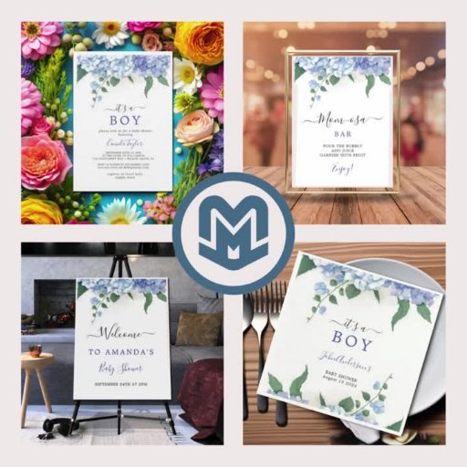 It's A Boy Blue Hydrangea Botanical Baby ShowerDesignt von Max Marshall