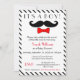 Ankündigen Sie die Ankunft Ihres kleinen Mannes mit dieser lustigen rot-schwarzen Baby Dusche Einladung! Dieses einzigartige Bild eines Schnurrbarts und einer roten Krawatte, die Ihren kleinen Jungen ankündigt, wird die Aufmerksamkeit und den Spaß Ihrer Freunde und Familie erlangen. Feiern Sie!