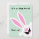 Fett, weiß, jolly Ostersonnige springt aus der Ecke der Einladung auf einem hellgrünen Aquarell Hintergrund. Er ist so glücklich, ankündigen und rufen, dass er und seine Kumpels werfen und eine Easter Ei Jagd für alle Kleinen. Selbst die Erwachsenen können mitmachen. Auf der anderen Seite des Einladens balanciert der Osterhase gelbe und rosa Eier...zeigt jedem, was kommt. Alle Texte auf beiden Seiten der Einladung können individuell angepasst werden.