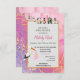 Die Baby Dusche Einladungskarte ist vollständig anpassbar. Schöne rosa Blume schmücken die Buchstaben auf einem rosa, glänzenden Marmorboden.