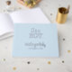 Es ist eine junge blaue Babydusche Silberfolie Gästebuch
