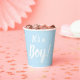 Es ist eine junge, hellblaue Babydusche, Geschlecht offenbart Party Paper Cups