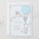 Ein kleiner Hase ist auf dem Weg Schwangerschaftsankündigung! Das Design ist gerahmt mit göttlichen blauen Blumen und einem kleinen, süßen Hasen mit einem kleinen Bouquet und einem blauen Ballon, der ein Banner fliegt, mit IT'S A BOY signiert und mit einem kleinen Vogel dekoriert ist. Diese niedliche Karte hat eine sanfte blaue Farbpalette und die Rückseite der Schwangerschaftsankündigung hat das gleiche skurrile Blumenmuster.