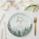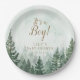 Diese rustikalen, eleganten Aquarellkiefernwald Babydusche Teller können mit Ihren Informationen in der modernen Typografie personalisiert werden. Entwickelt von Thisisnotme©