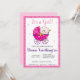 Es handelt sich um eine "Girl baby Dusche"-Einladung mit einem hübschen Baby-Mädchen in einem Kinderwagen mit einer Grenze von rosa Spiralen.