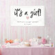 Die einfache Babypartyfahne, die eine Hand kennzeichnet, beschriftete Skript, das sagt, dass "es ist ein Mädchen!" mit einem rosa Herzen unter ihm. Fertigen Sie dieses Produkt besonders an, indem Sie das Mutter-zusein Namen- und Ereignisdatum addieren.