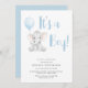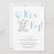 Feiern Sie Ihren kleinen Jungen mit dieser minimalistischen Elefantendusche. Mit einem niedlichen Babyelefanten, der einen blauen Ballon hält, ist dieses Design einfach, süß und leicht zu personalisieren.