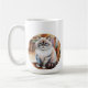Das ist eine Tasse mit einer hübschen Katze, die darauf sitzt.