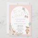 Bewundern Sie die Mama-to-be mit dieser niedlichen, weich rosa Dusche, die eine Aquarell-Illustration von Vintagen Spielzeug, Babyschuhen, einen Blumenbogen mit rosa und weiße, zarte Blume, rosa und grüne Eukalyptus-Blätter und eine niedliche kleine Garnele mit einem Ballon enthält.