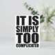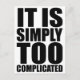 Zitat: "Es ist einfach zu kompliziert", in sehr LOUD TEXT, wie einige der Retro-80-ies/90-er Stil Vintage Shirts. Funktioniert am besten auf weißem oder schwarzem Hintergrund, aber testen Sie sich selbst, da die Hintergrundfarbe geändert werden kann. Einige Produkte ermöglichen auch das Ein-/Ausschalten der weißen Kontur.