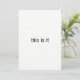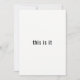 Dieses einfache, minimalistische, moderne Dinner in Schwarz-Weiß-Probe mit den einfachen Worten "das ist es" auf der Vorderseite und die Information zum Probe-Dinner auf der Rückseite. Einfach mit Ihrem Text anpassen. Weitere Artikel mit diesem Design finden Sie in meiner It's Ereignis Minimalistisch Foto Wedding Suite in meinem Zazzle Store: