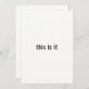 Dieses einfache, minimalistische, moderne Dinner in Schwarz-Weiß-Probe mit den einfachen Worten "das ist es" auf der Vorderseite und die Information zum Probe-Dinner auf der Rückseite. Einfach mit Ihrem Text anpassen. Weitere Artikel mit diesem Design finden Sie in meiner It's Ereignis Minimalistisch Foto Wedding Suite in meinem Zazzle Store: