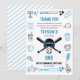 Sende einen Homerun "Danke" mit diesen Baseballkarten mit dem Thema "It's Game Time"! Perfekt für den 1. Geburtstag deines kleinen Schlagmanns, sind diese Karten lustig, spielerisch und passen zu deiner Baseball-Party-Dekoration.