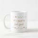Eine Grenze lebendiger Goldsterne umgibt den Satz: "Es ist gut, sich gut zu fühlen" auf beiden Seiten der Tasse. Kann mit Ihrem eigenen Gefühl guten Text anpassen. In diesem Laden sind passende Produkte.