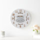 Diese niedliche Uhr ist für den Kaffee süchtig. Es hat eine weiche graue Hintergrundfarbe. In der Mitte der Uhr befindet sich eine Grafik einer Dampftasse Kaffee.