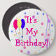 Der große Knopf "es ist mein Geburtstag" mit bunten Tupfen, Ausläufern und Ballonen. Vervollkommnen Sie, damit ein Lehrer den Geburtstagsstudenten für den Tag tragen lässt! Groß für die Geburtstagsperson am Büro oder am Job!