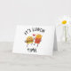 Um wie viel Uhr ist das Mittagessen? Es ist Mittagszeit. Hübscher Hamburger und Pommes frites in der Liebe. Ein perfektes Spiel sowohl für Kinder als auch für Erwachsene.