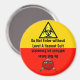 Ein roter und gelber Magnet mit einer Hälfte, auf der ein Biogefährdung-Zeichen mit "Nicht betreten ohne Hazmat-Anzug der Stufe A" und die andere Hälfte mit einem grinsenden Teufel und "Nicht ohne Exorzist betreten" steht. Ideal für diesen Ort, der nie sauber wird, aber verschiedene Ebenen schmutzig hat.