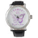 Uhr, Klassische Damenuhr mit schwarzen Lederarmband