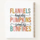 Dieses bunte und lustige Herbstdesign enthält eine Liste von Herbstfavoriten, darunter "Flannels", "Hayrides", "Pumpkins", "Sweaters" und "Bonfire". Der Text wird in einem kühnen, großformatigen Schriftart präsentiert, in dem jedes Wort mit einer anderen warmen, erdigen Farbe gefüllt wird, die von weichen Pinks und Orangen bis hin zu gedämpften Grüntönen und Blues reicht und den gemütlichen und lebendigen Geist der Saison perfekt abbildet. Die Wörter "Hyrides" und "Sweaters" werden in einem fließenden Skript geschrieben, das eine Touch der Eleganz schafft und einen schönen Kontrast zu den fett gedruckten Blockbriefen schafft. Dekorative Schnörkel umrahmen den Skripttext, was den Charme und die Anziehungskraft des gesamten Textes erhöht. Dieses Design ist perfekt für den Herbst.