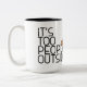 Es ist zu Leute außerhalb des sonnigen Kaffees Lov Zweifarbige Tasse
