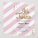 Rosa gestreifte Babyparty laden für Doppelmädchen ein. Hinterer Druck eingeschlossen.