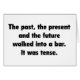 Die Vergangenheit, das Geschenk und die Zukunft gingen in ein Bar. Sie war angespannt.