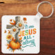 Friedliches, farbenfrohes Design mit Herbst/Herbst-Szene mit Kürbis, Holzkreuz, Schmetterlinge und Herbst-Blume. Der farbenfrohe inspirierende Text lautet: "Es war Jesus die ganze Zeit". Dieses Design ist auf einer Vielzahl von Produkten erhältlich.
