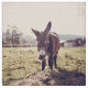 Ein Esel, der trockenes Gras isst, in dem die gesamte Forderung mit grünem Gras durchgesetzt wird
