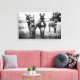 Vier Esel auf einem Feld an einem miesen Wintermorgen.