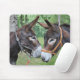Ein Foto von zwei freundlichen braunen grauen Eseln, die Nasen mit einem Hintergrund des Grases und der Bäume berühren. Sie schauen mit ihren Vorwärts Ohren und weißen Ringen um ihre leichten Augen sehr niedlich. Die Fotografie wurde an zeigen in Frankreich genommen, in dem Esel sehr populär sind.