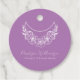 Esoterische Psychische Moderne Minimalistische Halbmond Kreis Gefallen Tags in Licht lila. Moderne Linie zeichnend von Halbmond, Blume und grünen Blätter mit weißer, kursiver Schrift. Text bereit für Ihre Informationen. Perfekt für Massagetherapeuten, Tarot-Leser, Energieheiler, Therapeuten, ganzheitliche Heilung, Wellness-Center und Kliniken, Yogalehrer, Reiki und Lichtarbeiter. Matching Business Items verfügbar.
