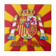 Das nationale Wappen von Espana (Spanien) und der Ländername sind in einer Perspektive gestaltet. Diese Bilder befinden sich in der Mitte eines Sternexplosion-Hintergrundes, der mit den Farben der spanischen Flagge gemacht ist.